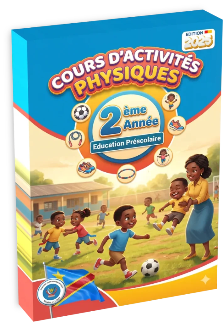 Ce manuel constitue le guide de référence pour l’application du Programme National de l’Enseignement Maternel (PNEM 2021) en République Démocratique du Congo. Il s’adresse aux éducateurs de la deuxième année maternelle (enfants de 4 ans). L’activité physique à cet âge dépasse le simple divertissement ; elle structure le développement psychomoteur, favorise la socialisation par le jeu et installe les bases d’une hygiène de vie active. L’enseignant trouvera ici des directives précises pour mener des séances dynamiques, sécurisées et adaptées aux réalités matérielles des écoles congolaises, qu’elles soient urbaines ou rurales.
