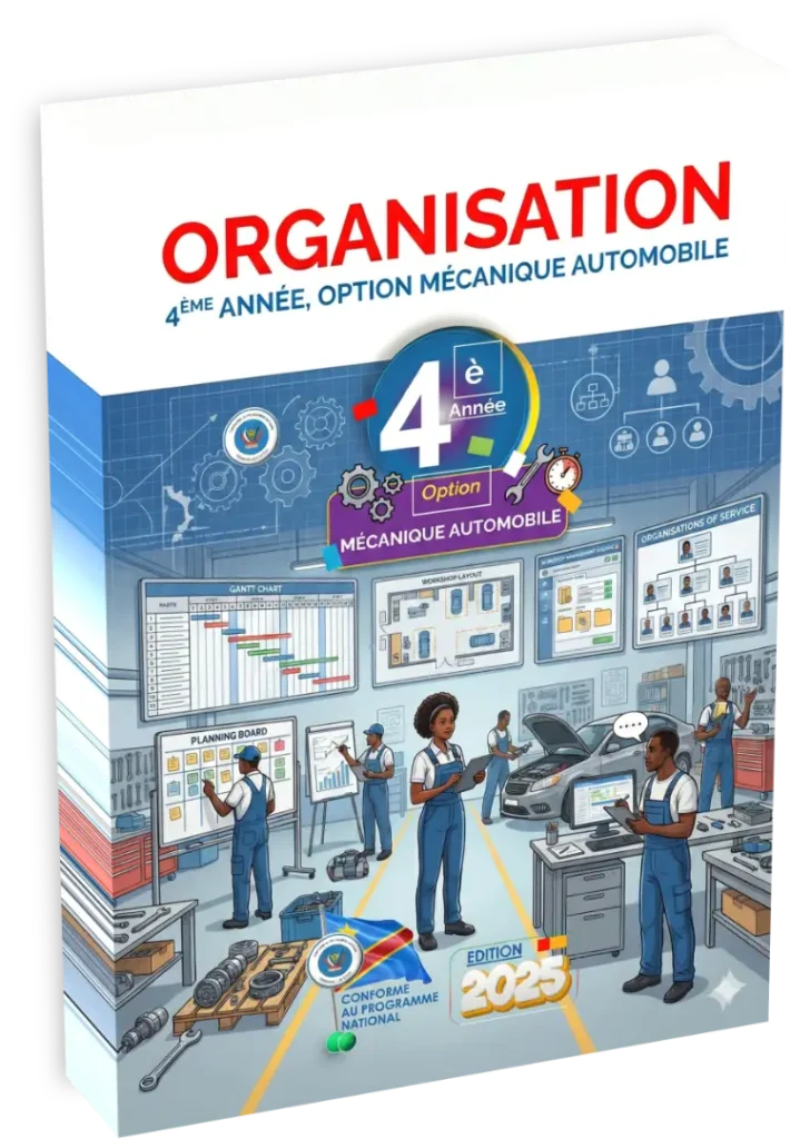 L’enseignement du cours d’Organisation en quatrième année de Mécanique Automobile vise l’acquisition d’une double compétence managériale et technique indispensable à l’insertion professionnelle. L’élève développe une compréhension systémique de l’entreprise, allant des structures juridiques aux interactions humaines régissant le monde du travail en République Démocratique du Congo. Le programme prépare le futur technicien à assumer des responsabilités de gestion au sein d’un atelier de réparation, en maîtrisant les flux administratifs, la relation clientèle et les impératifs de rentabilité économique.