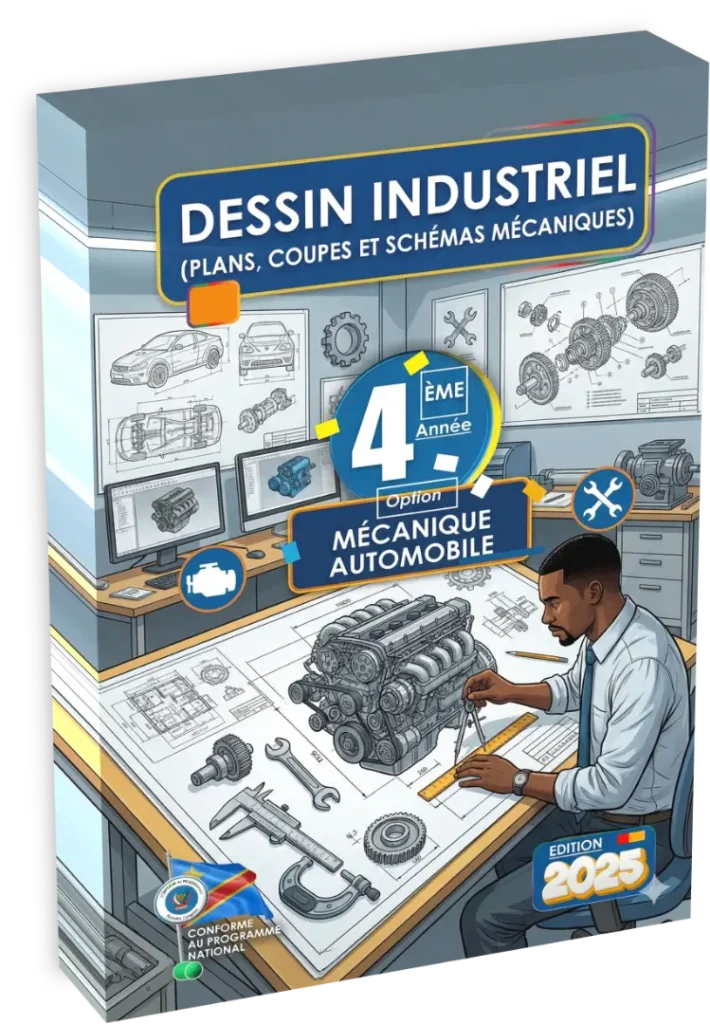 L’enseignement du dessin industriel en 4ème année de Mécanique Automobile vise à doter l’élève de la maîtrise du langage graphique universel indispensable à la communication technique. Ce cours permet à l’apprenant de passer de la représentation de pièces simples à l’analyse d’ensembles mécaniques complexes et de systèmes électriques automobiles. L’objectif final est de rendre l’élève capable de lire, interpréter et réaliser des plans de fabrication ou de maintenance, compétences essentielles pour l’intervention sur les véhicules modernes circulant en République Démocratique du Congo.