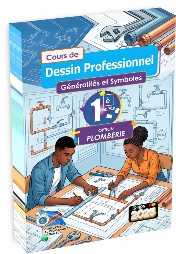 L’enseignement du dessin professionnel en première année de l’option plomberie vise à doter l’élève d’un langage graphique universel, indispensable à la communication technique sur les chantiers de construction en RDC. Ce cours initie l’apprenant à la lecture et à la production de plans sanitaires, transformant des concepts abstraits en représentations visuelles normées. Il établit les bases rigoureuses nécessaires pour interpréter les schémas d’architectes et concevoir des croquis d’exécution précis, garantissant la conformité des installations hydrauliques futures.