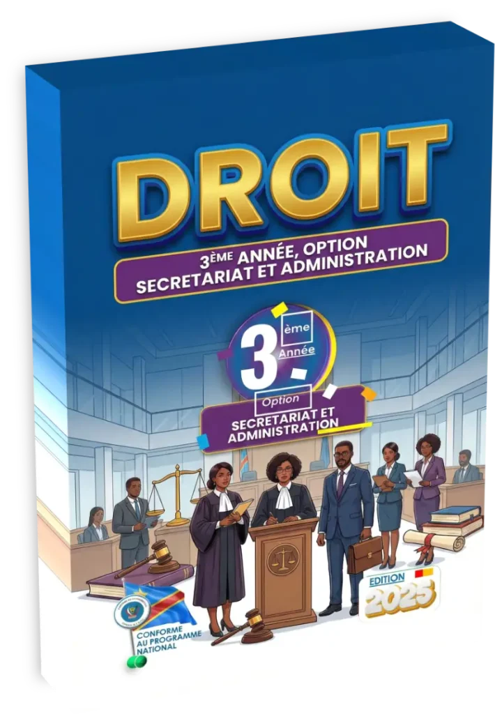 L’enseignement du Droit en troisième année des humanités techniques, option Secrétariat-Administration, vise la maîtrise des fondements juridiques régissant les relations professionnelles et commerciales en République Démocratique du Congo. L’apprenant acquiert la capacité d’identifier les obligations légales, de sécuriser les transactions administratives par la connaissance des contrats et de comprendre le statut juridique des acteurs économiques. Ce bagage théorique permet au futur secrétaire de prévenir les contentieux et d’assurer une gestion administrative conforme aux normes OHADA et au Code Civil congolais.
