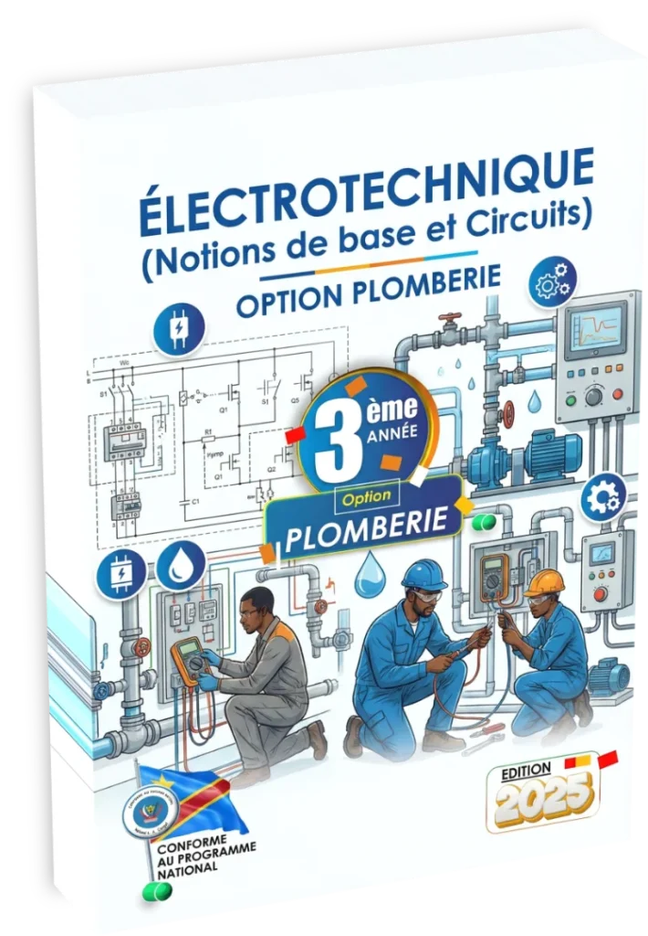 Ce cours fondamental a pour vocation d’initier l’élève plombier aux principes physiques régissant l’électricité, indispensable au fonctionnement des équipements sanitaires modernes. L’objectif consiste à maîtriser les grandeurs électriques de base, à comprendre les lois fondamentales des circuits et à appréhender les risques liés à l’interaction entre l’eau et l’électricité. À l’issue de ce programme, l’apprenant sera capable de réaliser des raccordements électriques simples pour des chauffe-eau ou des pompes, de dimensionner des câbles d’alimentation et d’assurer la sécurité des installations dans des environnements humides, de la ville portuaire de Matadi aux cités minières de Kolwezi.
