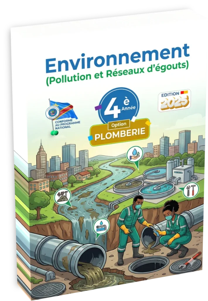 - Objectifs Généraux du Cours Ce cours vise à doter l’élève de la quatrième année des compétences nécessaires pour comprendre les interactions complexes entre les activités humaines, les installations sanitaires et l’écosystème 🌍. L’apprenant développera une conscience aiguë des enjeux liés à la pollution et à l’assainissement, indispensable pour un futur plombier responsable de la gestion des fluides. L’enseignement focalise sur la maîtrise des techniques de gestion des déchets, la compréhension des mécanismes du changement climatique et la conception de réseaux d’évacuation respectueux des normes d’hygiène publique en vigueur en République Démocratique du Congo.
