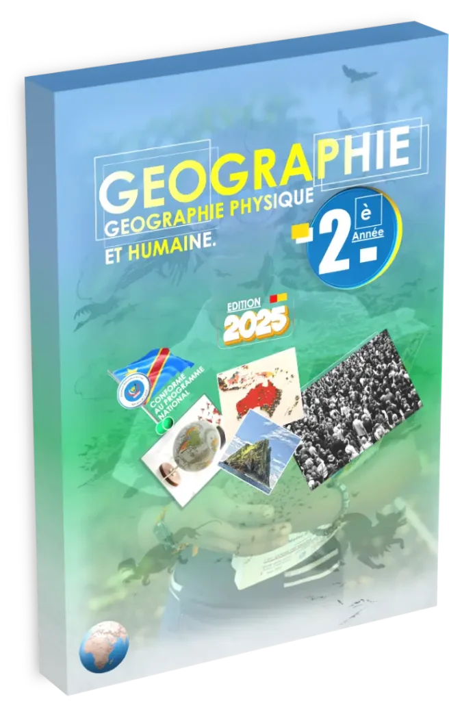 Ce cours de Géographie Générale, physique et humaine, est destiné aux élèves de la 2ème année des Humanités (anciennement 4ème année secondaire) en République Démocratique du Congo. Il constitue une étape charnière dans le parcours scolaire, marquant le passage d’une géographie descriptive à une géographie explicative et analytique. Le programme vise à doter l’apprenant des outils intellectuels nécessaires pour comprendre les grandes lois naturelles régissant le globe terrestre ainsi que les mécanismes complexes de l’occupation humaine. L’approche pédagogique privilégie l’observation, l’analyse des données et la compréhension des interactions systémiques entre l’homme et son milieu.