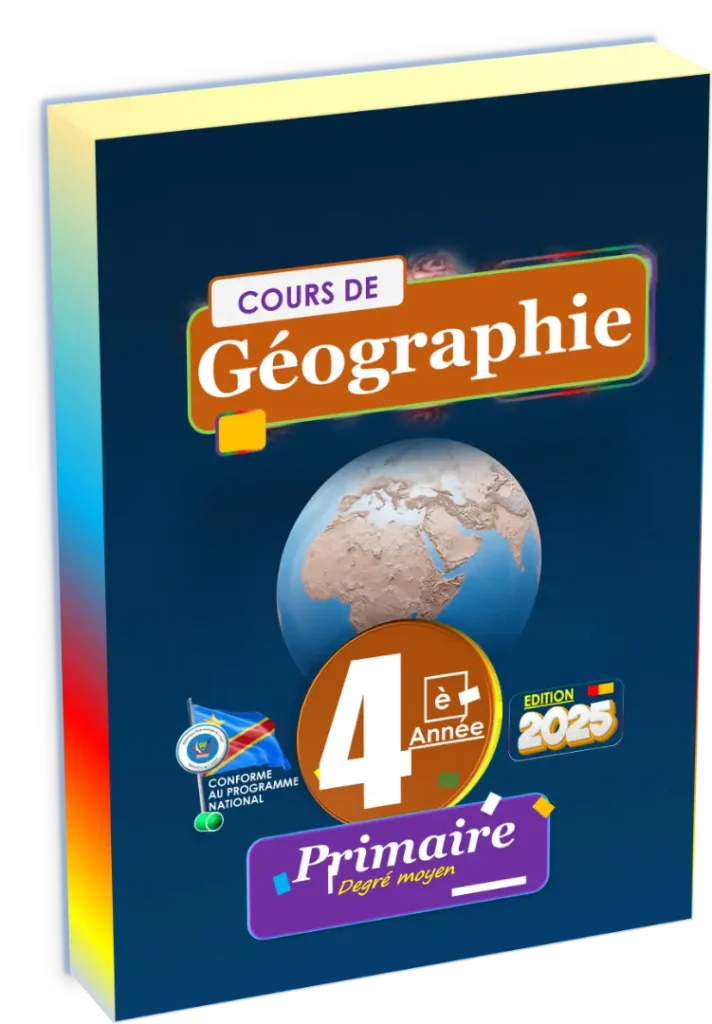Ce cours de géographie de quatrième année marque une transition fondamentale, faisant passer l’élève de l’observation de son milieu local à l’analyse structurée de grands ensembles. L’accent est mis sur l’acquisition des outils cartographiques (orientation, lecture de carte) et sur la compréhension de la République Démocratique du Congo en tant qu’entité administrative (ses provinces) et géographique (sa place en Afrique). Le programme introduit également les bases de l’astronomie en situant la Terre dans le système solaire.