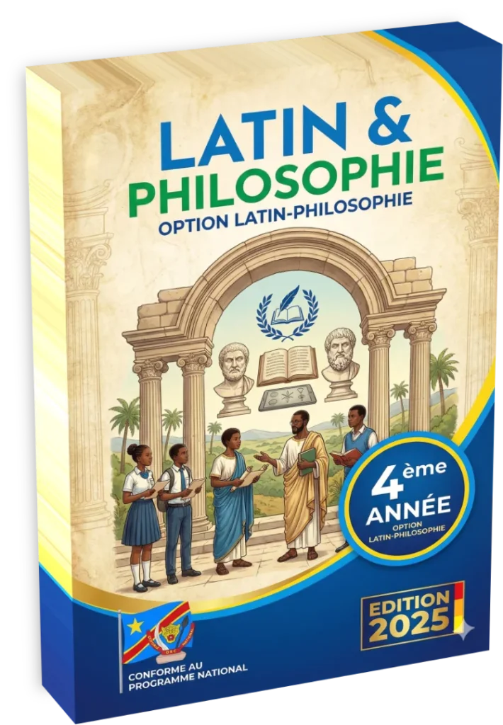 Ce manuel constitue le support didactique ultime pour la classe de quatrième année des Humanités (Terminales), option Latin-Philosophie. Il prépare directement les élèves à l’Examen d’État en consolidant l’intégralité des acquis morphosyntaxiques et en développant une compétence d’analyse littéraire et philosophique de haut niveau. L’enseignant utilisera ce cours pour affiner la pensée critique de l’apprenant, transformant la traduction en un exercice d’interprétation rigoureuse des concepts abstraits. La maîtrise du latin devient ici un instrument de domination intellectuelle, permettant de saisir les racines de la pensée occidentale et de dialoguer avec les sagesses africaines.