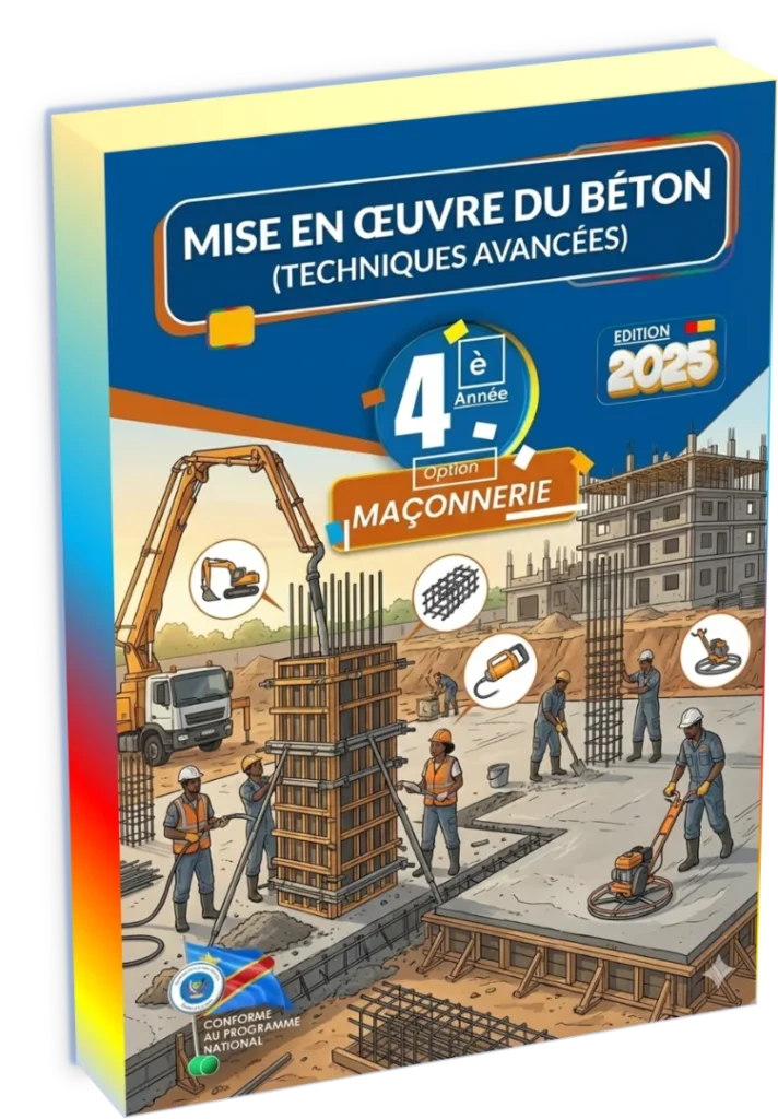 Ce programme d’enseignement vise la maîtrise intégrale des processus complexes liés à la technologie du béton armé. L’apprenant acquiert les compétences nécessaires pour concevoir des mélanges adaptés aux contraintes structurelles, diriger les opérations de coffrage et de coulage, et assurer la pérennité des ouvrages par des techniques de cure appropriées. L’enseignement focalise sur l’autonomie technique du futur chef de chantier, capable d’intervenir sur des projets d’envergure, des immeubles de Kinshasa aux infrastructures minières du Lualaba 🇨🇩.