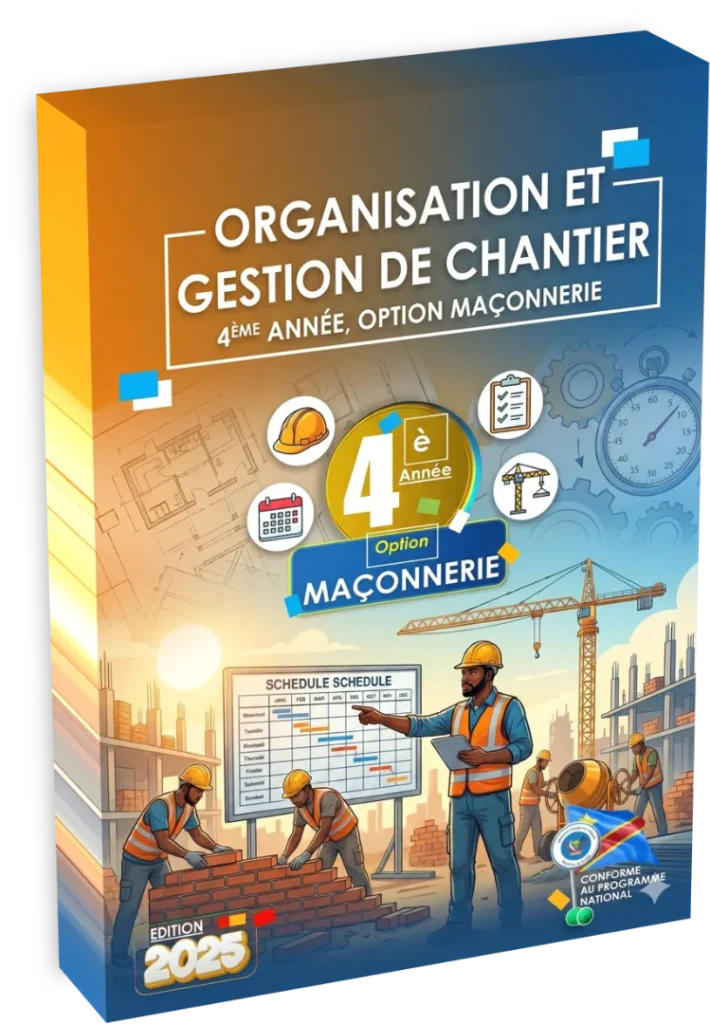 Ce manuel constitue un support didactique fondamental pour l’enseignement de l’organisation de chantier en quatrième année technique. La réussite d’un projet de construction en République Démocratique du Congo dépend intrinsèquement de la rigueur de sa préparation et de la fluidité de sa gestion. L’enseignant trouvera ici une progression logique, allant des concepts administratifs initiaux jusqu’à la clôture financière et technique des travaux. L’approche pédagogique privilégie l’analyse de situations réelles rencontrées sur les chantiers congolais, de Kinshasa à Lubumbashi, pour ancrer les savoirs dans la réalité professionnelle.
