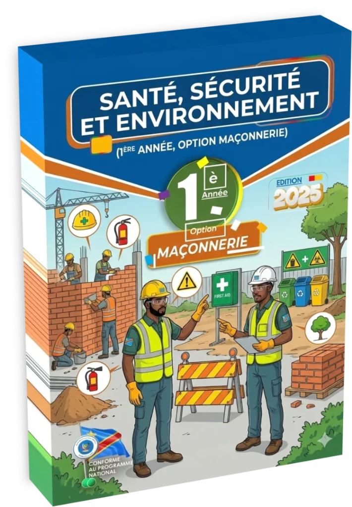 Ce manuel constitue un outil pédagogique fondamental destiné aux formateurs des écoles techniques de la République Démocratique du Congo 🇨🇩. Il vise à structurer l’enseignement de la branche Santé, Sécurité et Environnement selon une approche par compétences, en mettant l’accent sur la compréhension biologique du corps humain au travail. L’enseignant veillera à adapter les concepts anatomiques aux réalités physiques du métier de maçon, en illustrant chaque fonction physiologique par des situations concrètes vécues sur les chantiers, de la pose de briques à Lubumbashi au gâchage du béton à Matadi.